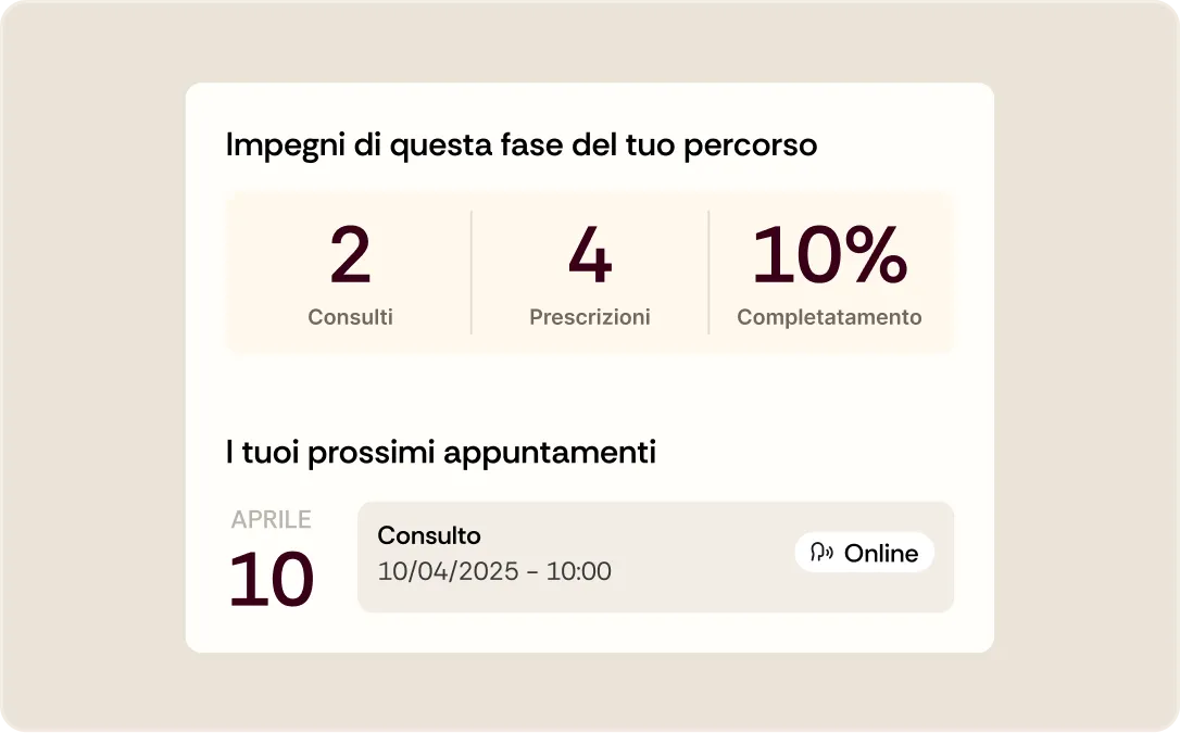 In ogni fase avrai risultati, aggiornamenti e appuntamenti in tempo reale, restando sempre parte attiva del tuo cammino.